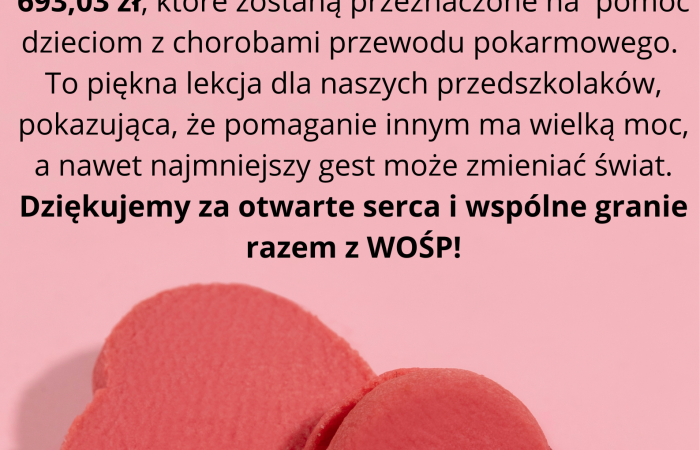Dzięki wspólnemu działaniu udało nam się zebrać 693,03 zł, które zostaną przeznaczone na pomoc dzieciom z chorobami przewodu pokarmowego.
