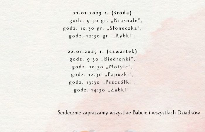Harmonogram związany z uroczystością z okazji Dnia Babci i Dziadka.