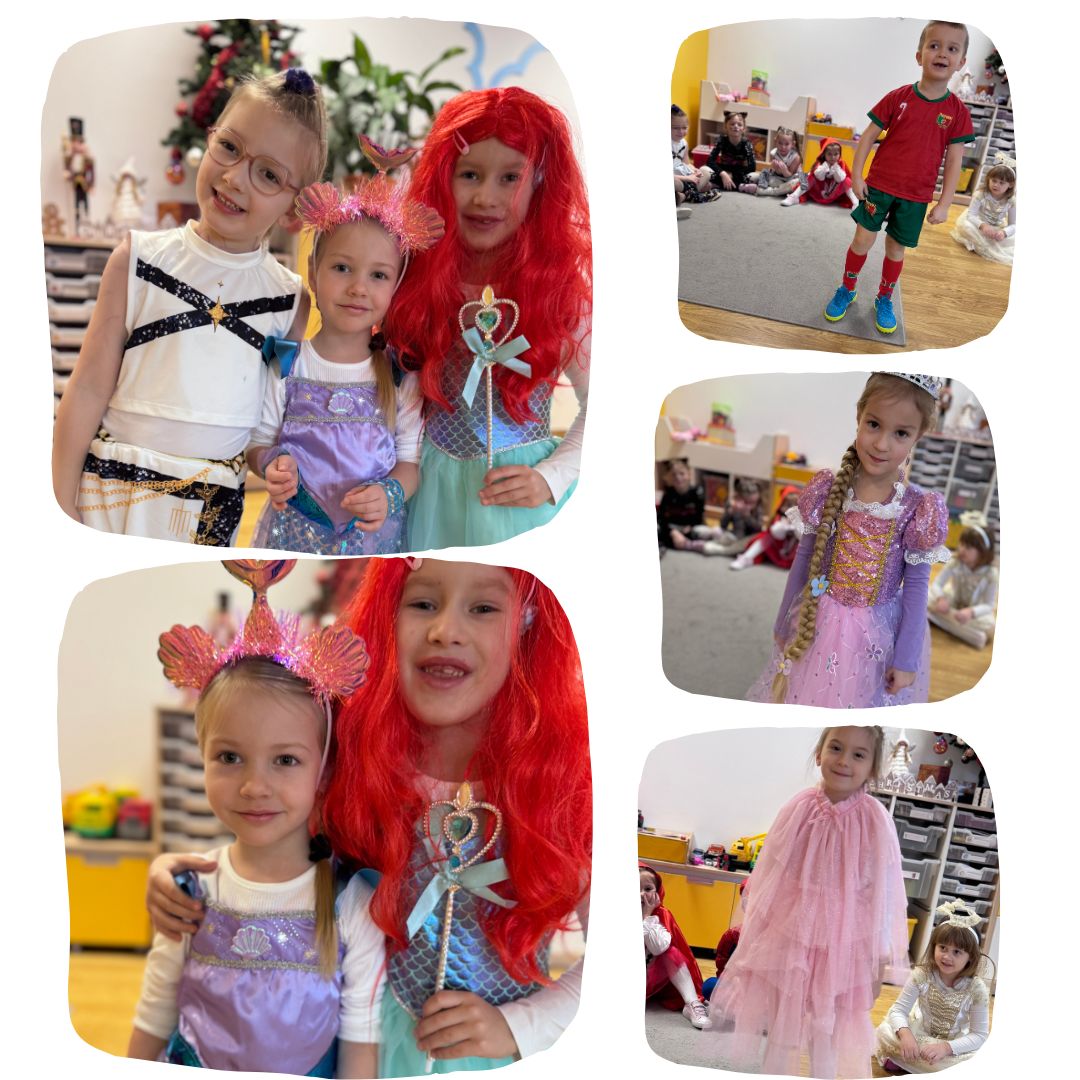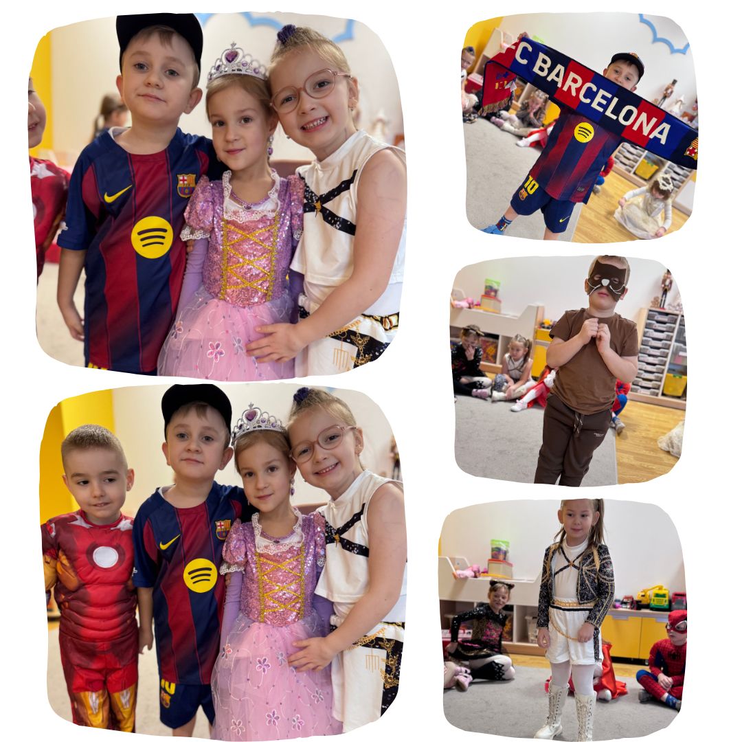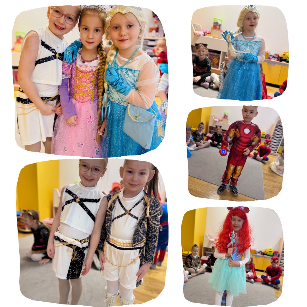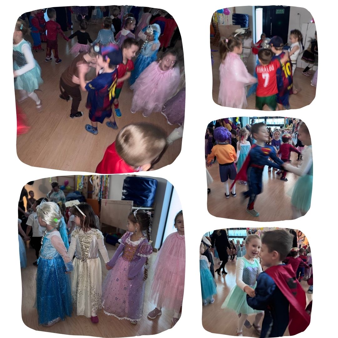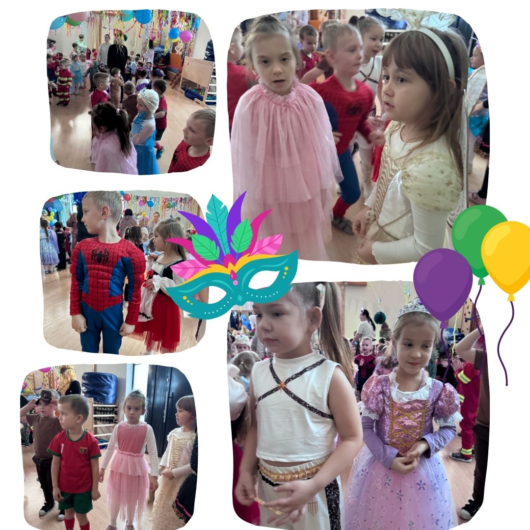 Tego dnia sala zamieniła się w bajkową krainę, w której spotkać można było Rumii , Spidermana, Syrenkę Arielkę, Kotka, Roszpunkę, Aniołka, Elsę, piękne Księżniczki, Lamparta, Czerwonego Kapturka oraz Iron Mana. Dzieci zachwycały swoimi kreatywnymi strojami, radością i energią na parkiecie. To był niezapomniany bal pełen tańca, śmiechu i wspaniałej zabawy!