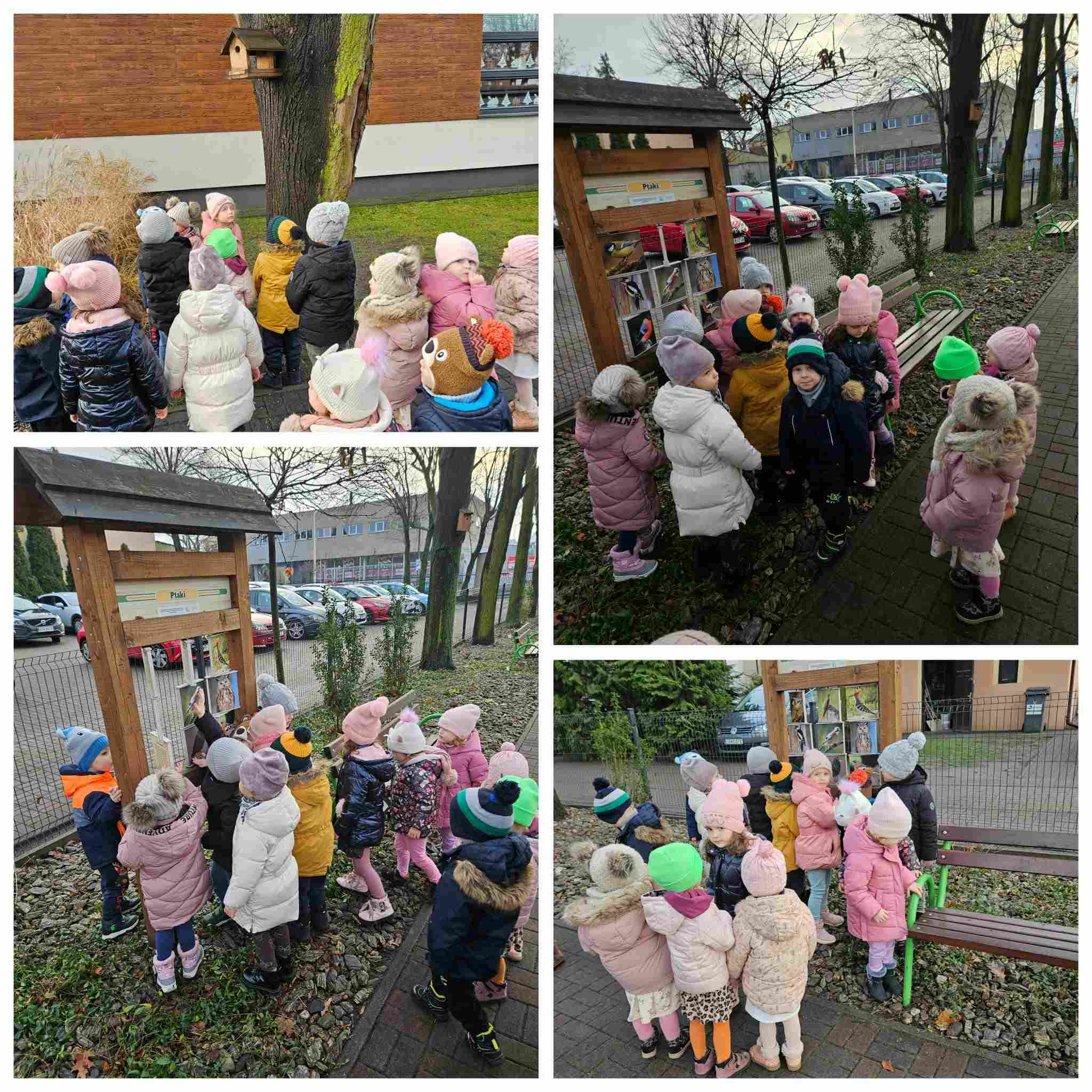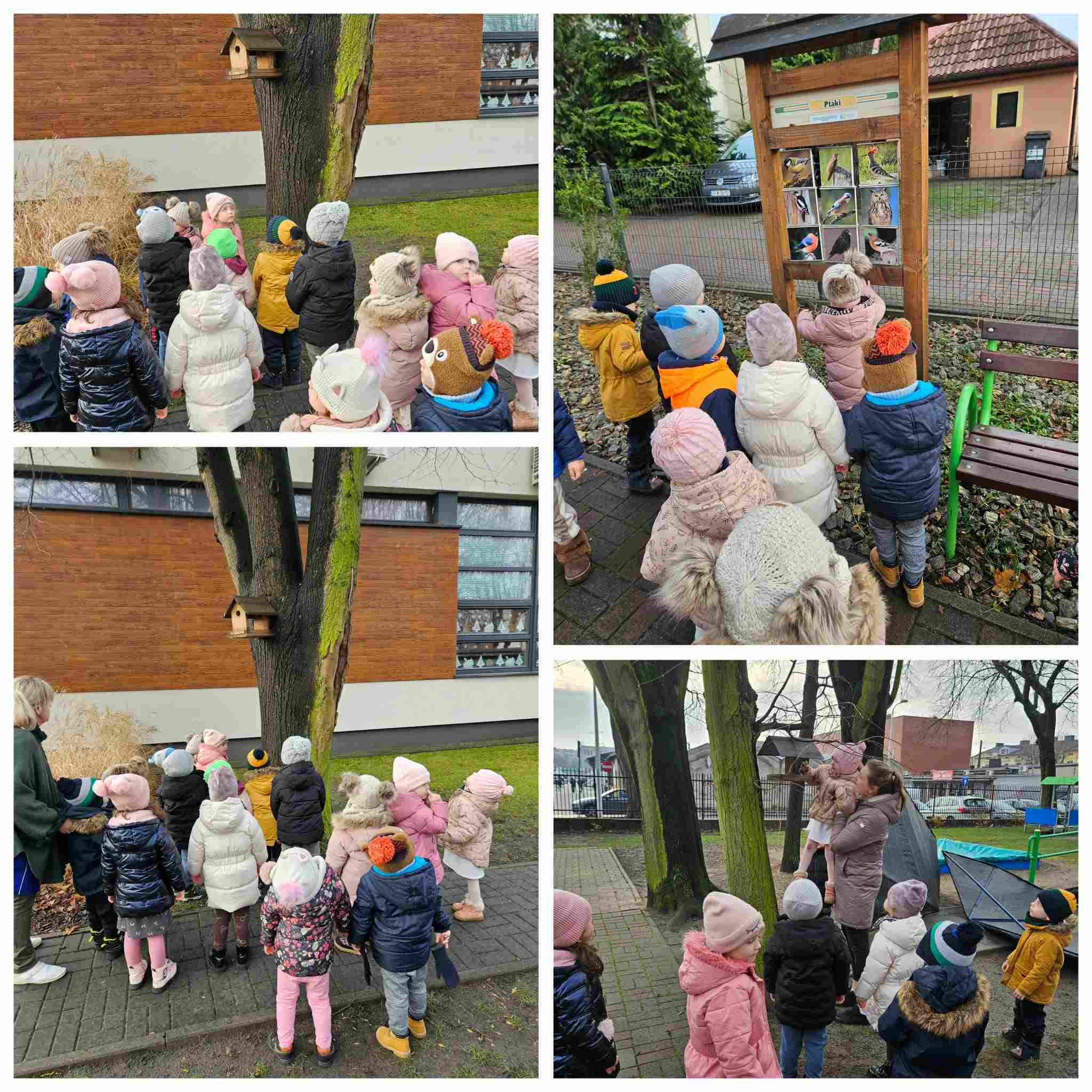 Podczas pobytu na przedszkolnym placu zabaw dzieci uczestniczyły w dokarmianiu ptaków, ucząc się jednocześnie właściwych postaw proekologicznych oraz troski o zwierzęta, szczególnie w okresie zimowym. Przedszkolaki z zainteresowaniem obserwowały ptaki odwiedzające karmnik, a także korzystały z dostępnych na placu zabaw tablic edukacyjnych zawierających informacje oraz zdjęcia różnych gatunków ptaków. Zajęcia na świeżym powietrzu sprzyjały poszerzaniu wiedzy przyrodniczej, rozwijaniu ciekawości poznawczej oraz kształtowaniu wrażliwości na otaczającą przyrodę.