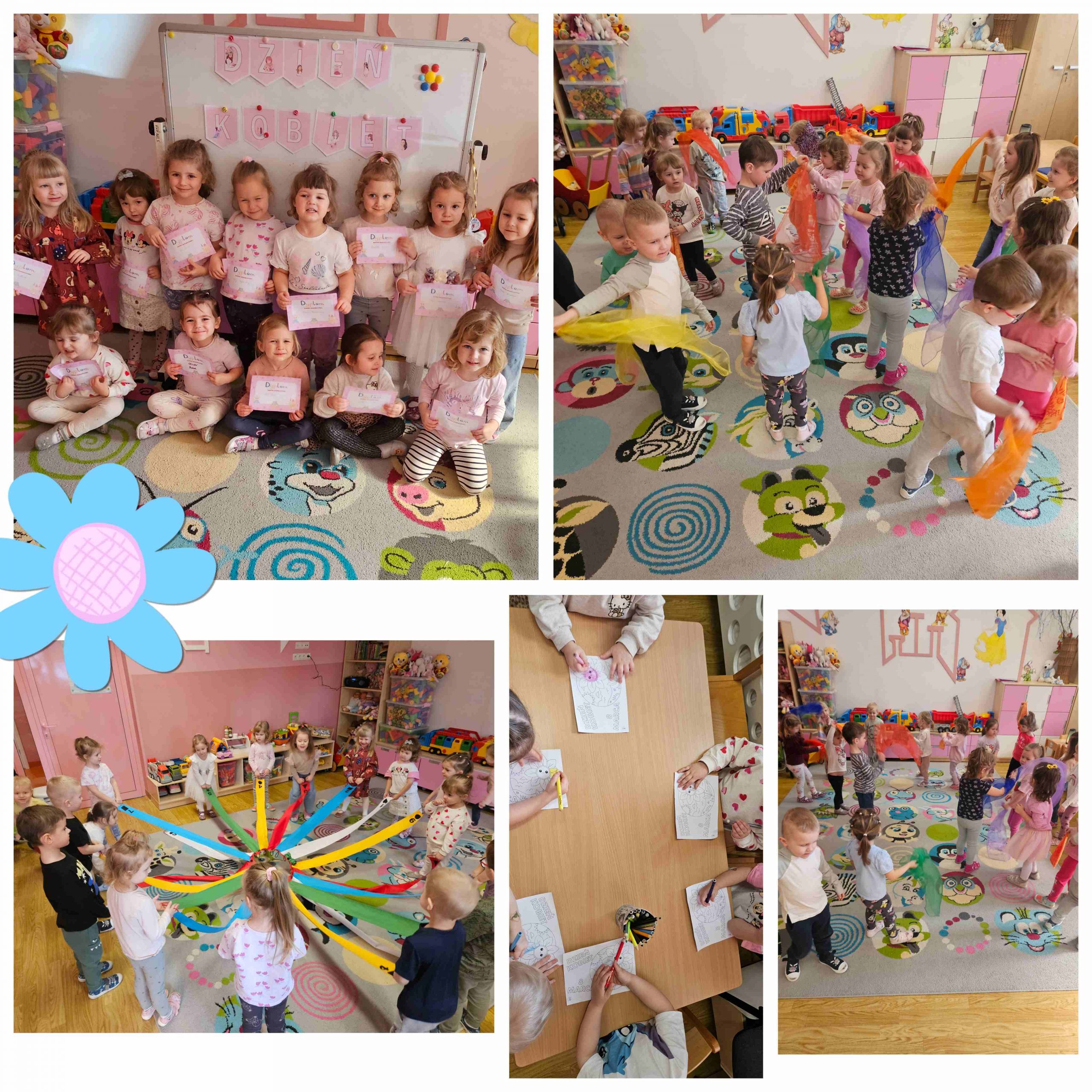 Z okazji Dzień Kobiet w naszym przedszkolu panowała radosna i wyjątkowa atmosfera 🌷. Dzieci wspólnie świętowały ten dzień poprzez zabawy, śpiew i różnorodne aktywności. Nie zabrakło uśmiechów, życzliwości oraz pięknych, wiosennych akcentów. To był czas pełen radości i wspólnie spędzonych chwil 😊
