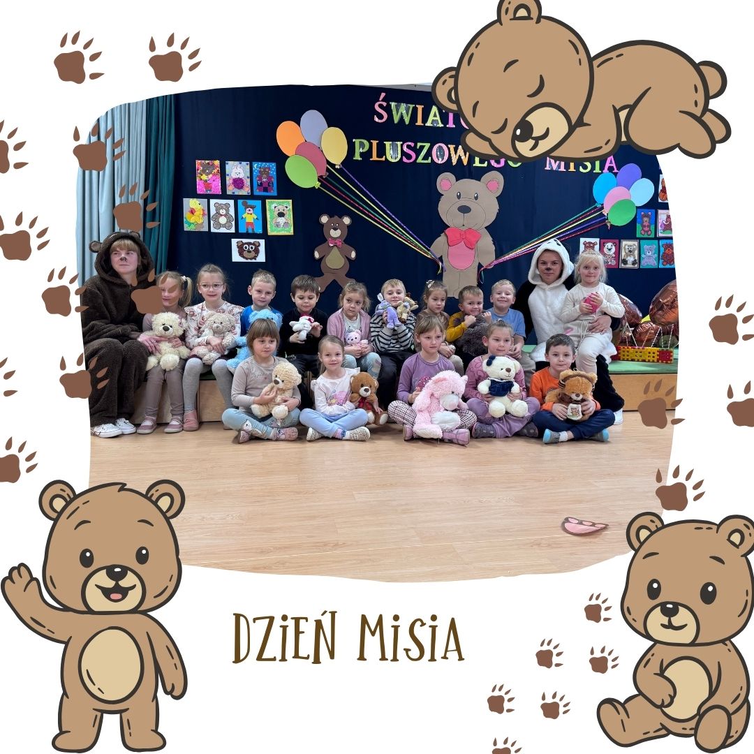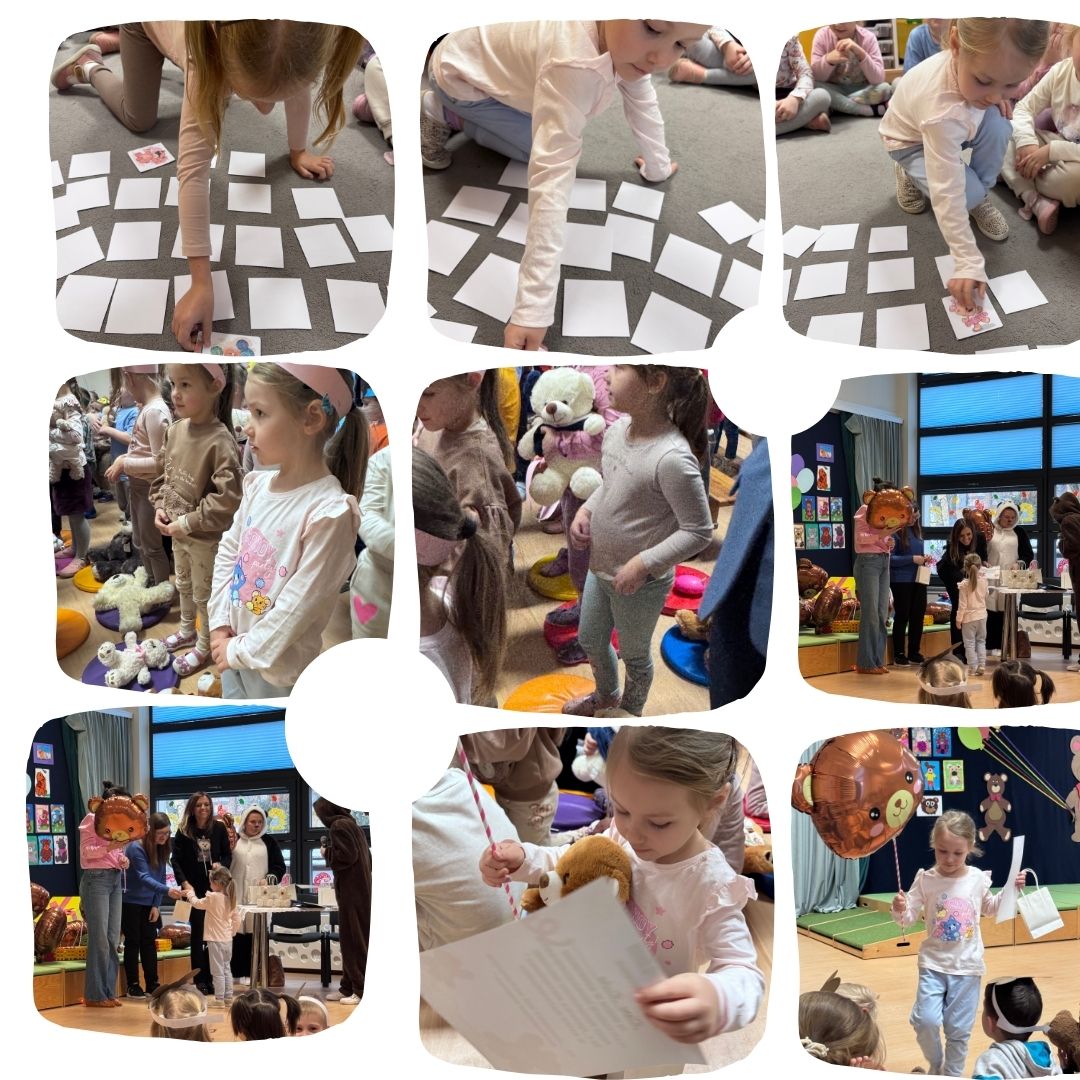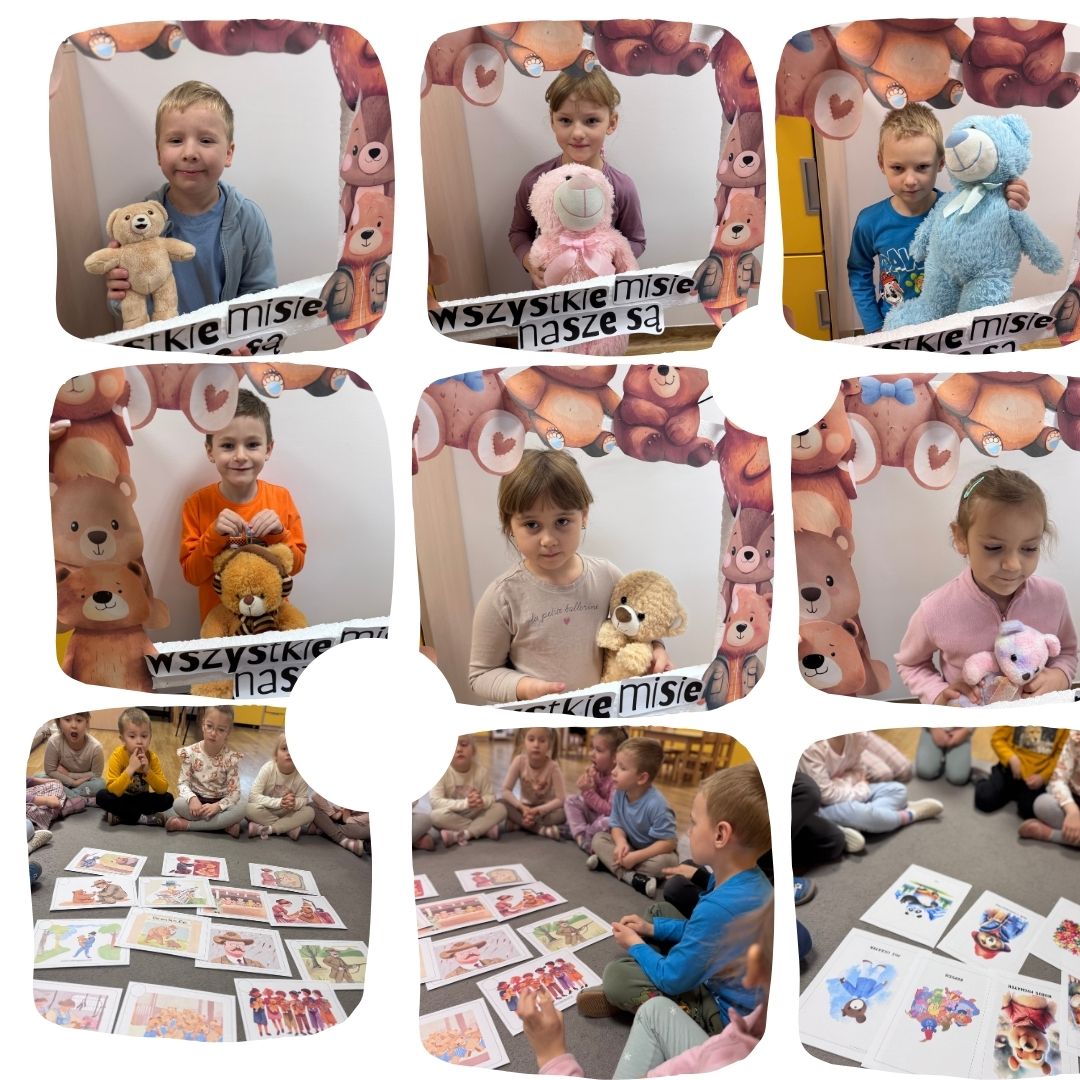 W grupie Słoneczek świętowaliśmy Dzień Pluszowego Misia! Dzieci poznały historię powstania pluszowego misia, układały własne misiowe historyjki oraz ćwiczyły orientację przestrzenną podczas zabaw z misiami. Nie zabrakło także zadań słuchowych – wysłuchiwania głosek i „karmienia” misiów pysznym miodkiem. Wspólnie graliśmy w memory, bawiliśmy się na sali gimnastycznej razem z innymi grupami, a na zakończenie nastąpiło rozstrzygnięcie konkursu „Pluszowy miś najlepszym przyjacielem dziecka”, w którym wzięły udział wszystkie Słoneczka. Jedna z prac została wyróżniona – serdecznie gratulujemy autorce oraz dziękujemy wszystkim dzieciom za ogromne zaangażowanie i radość, jaką wniosły w dzisiejsze świętowanie!