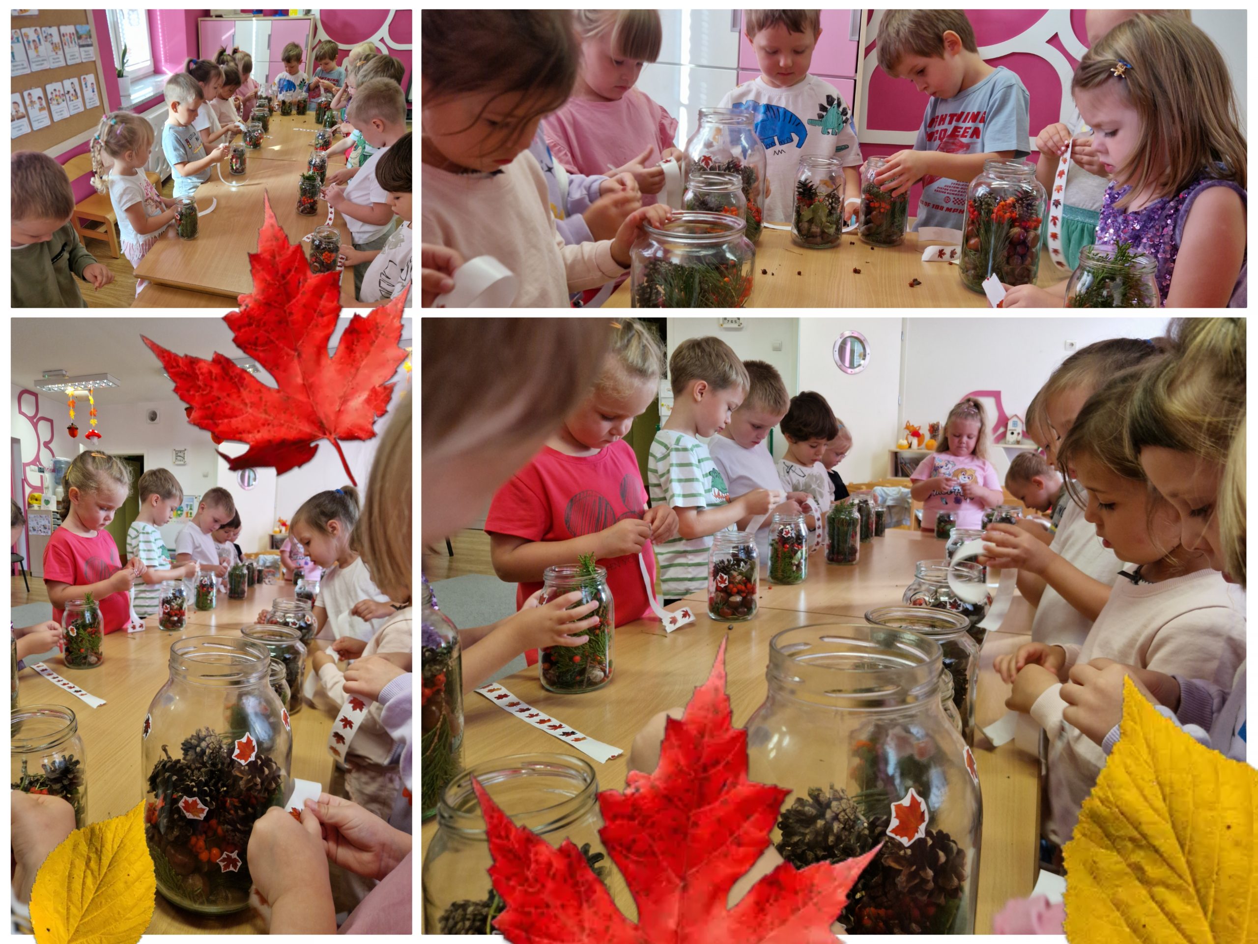 Dziś "Motyle" zamknęły jesień w słoiku! Podczas kreatywnych warsztatów dzieci stworzyły małe, kolorowe kompozycje z darów natury - liści, kasztanów, żołędzi i szyszek. Było twórczo, pachnąco i bardzo jesiennie.
