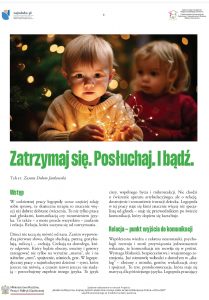 Artykuł jest zaproszeniem zatrzymania się i do refleksji nad tym, jak ważne jest prawdziwe towarzyszenie dziecku. Do dostrzeżenia, że komunikacja to nie tylko słowa, ale przede wszystkim relacja – uważna, ciepła, pełna szacunku. Dzieci bez względu na to czy mają rok, dwa lata, trzy lata, czy pięć potrzebują tego samego: dorosłego, który jest naprawdę obecny, który patrzy, słucha i pozwala im być sobą.