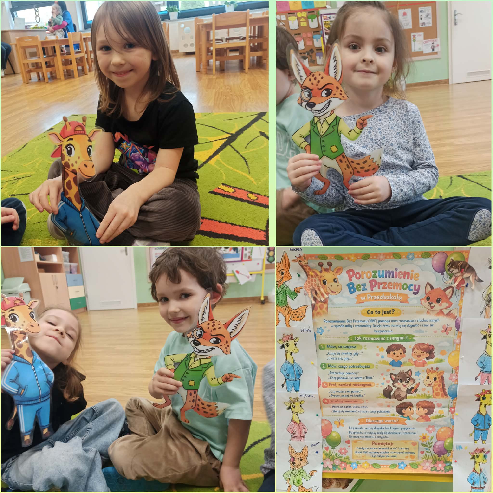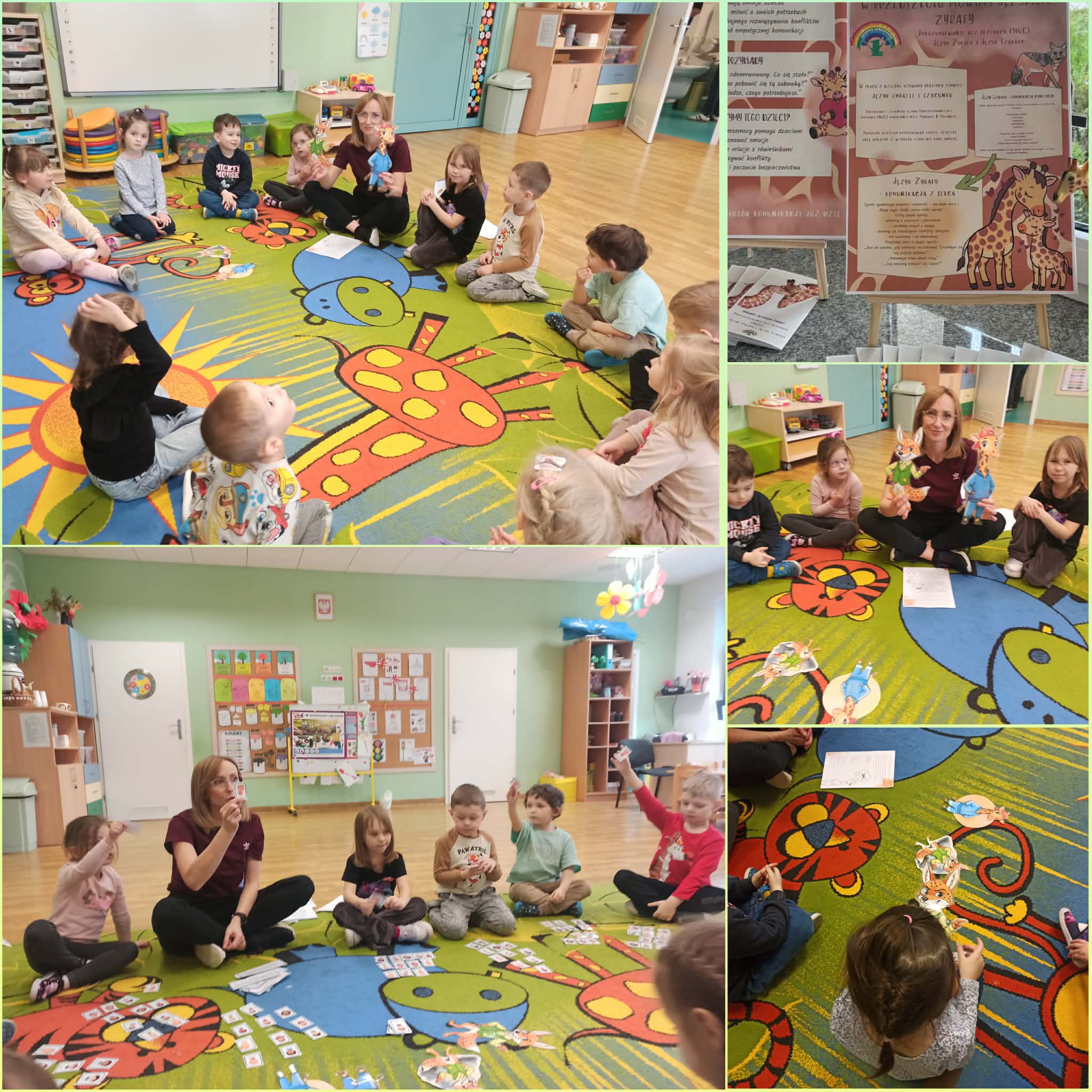 W naszej grupie realizowane są zajęcia dotyczące porozumienia bez przemocy. Celem zajęć jest wspieranie dzieci w rozwoju empatii i budowania dobrych relacji z rówieśnikami.