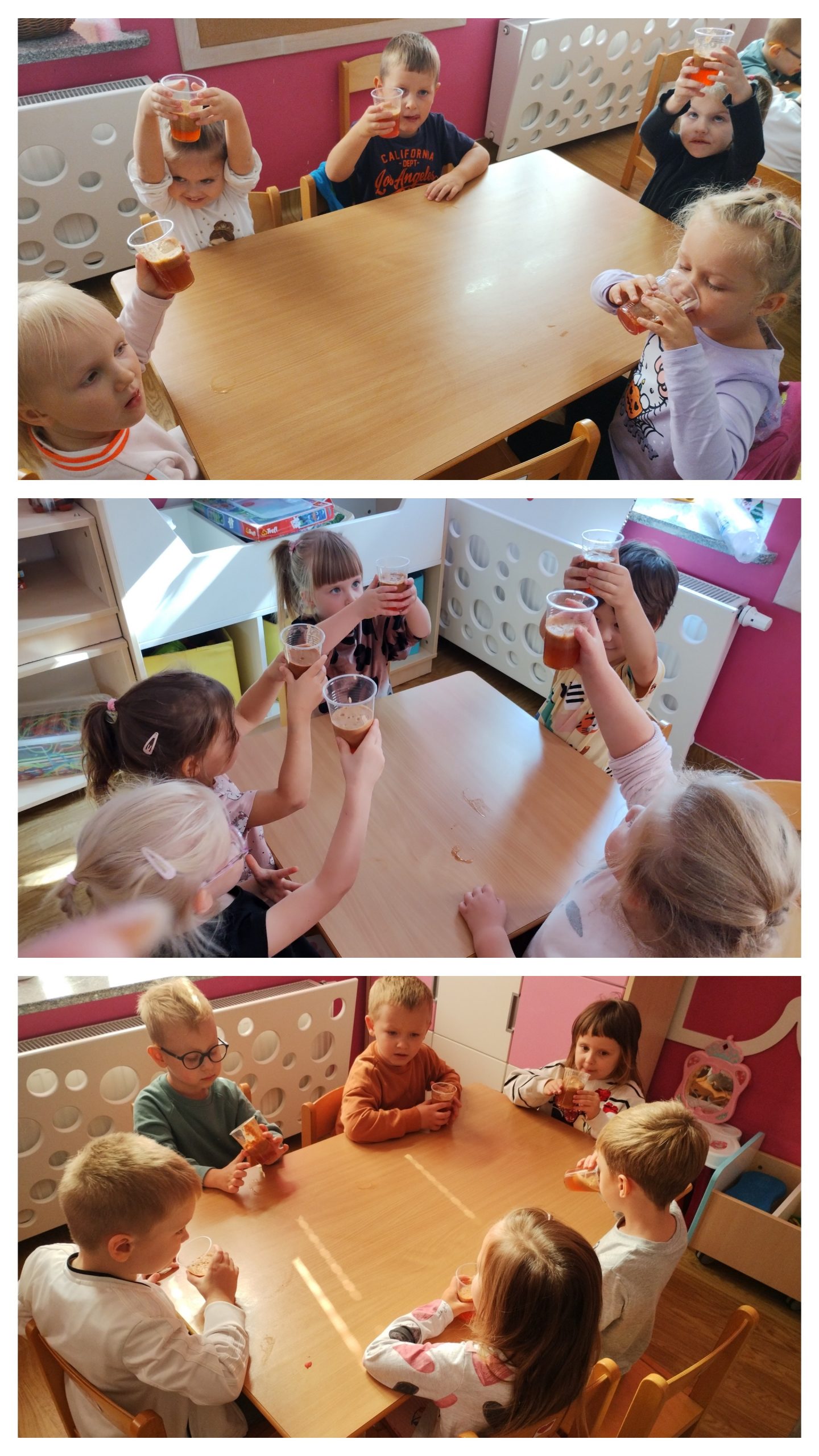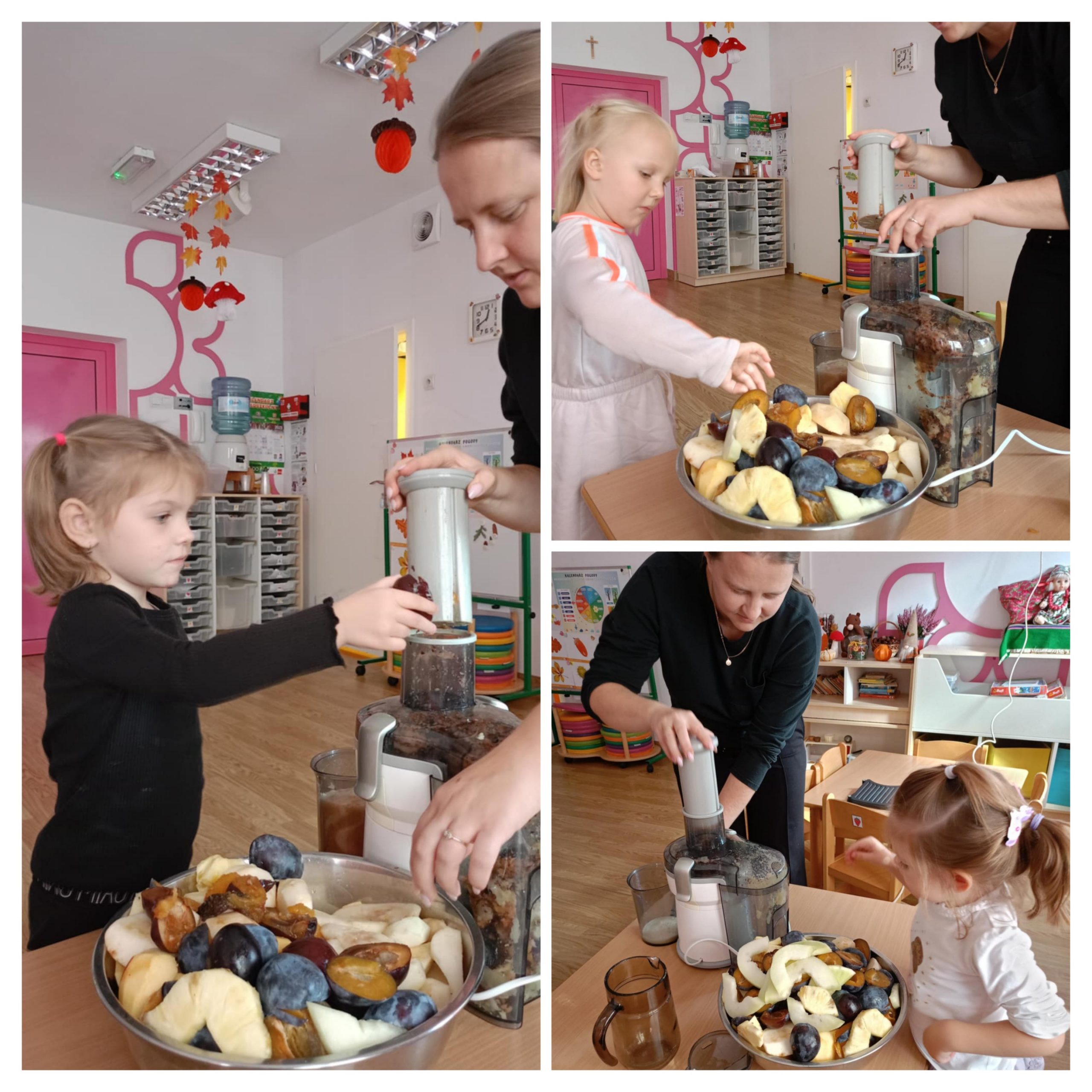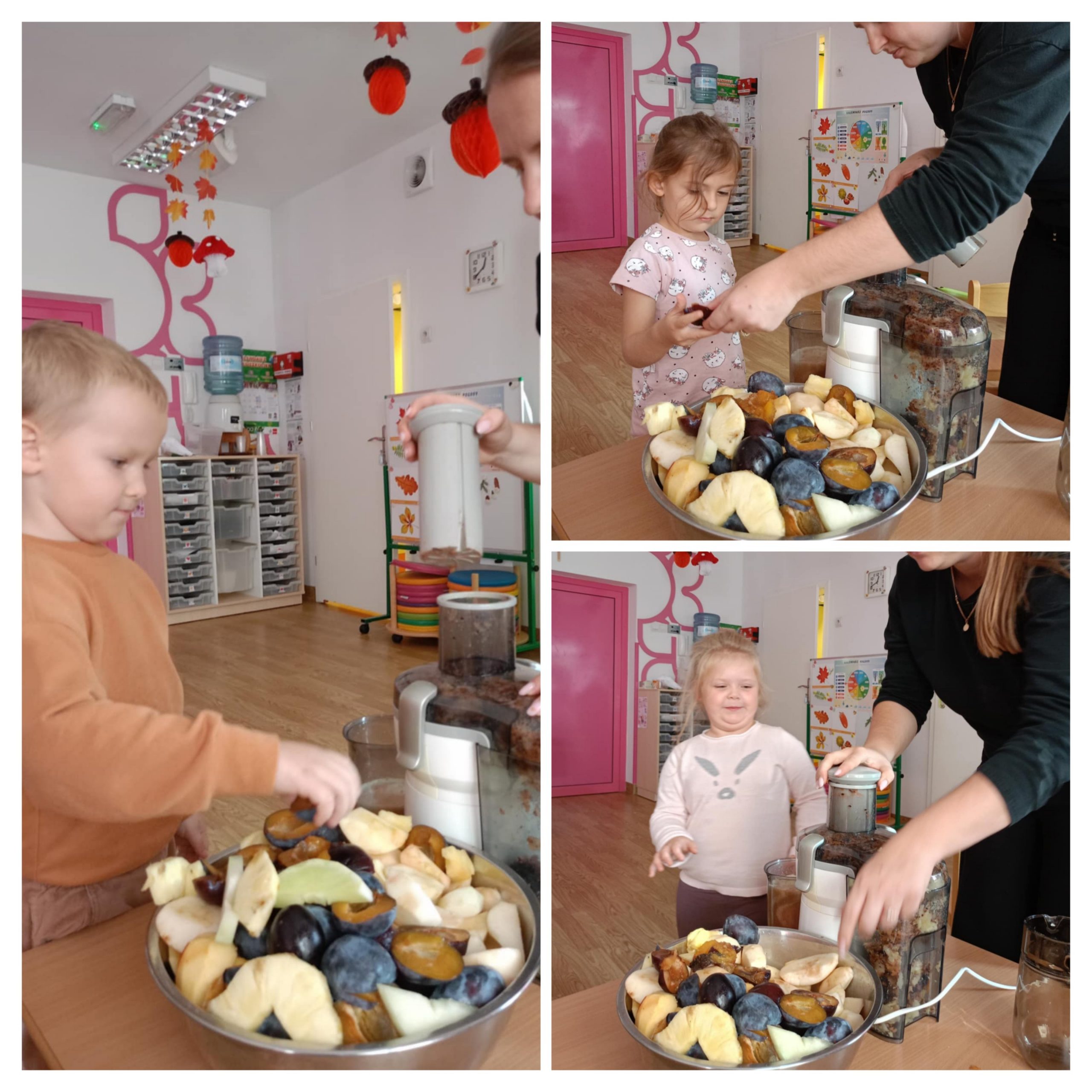 Dziś "Motylki" zamieniły się w prawdziwych małych kucharzy! Podczas zajęć dzieci miały okazję przygotować własny, zdrowy sok owocowy ze świeżych, kolorowych owoców. Na stole królowały soczyste jabłka, gruszki, śliwki , a nawet ananas. Przedszkolaki dowiedziały się dlaczego warto jeść owoce i jak ważne są zdrowe nawyki żywieniowe. Na koniec każdy z dumą wypił swój własnoręcznie zrobiony sok - a uśmiechy dzieci były najlepszym dowodem na to, że zdrowe może być pyszne!