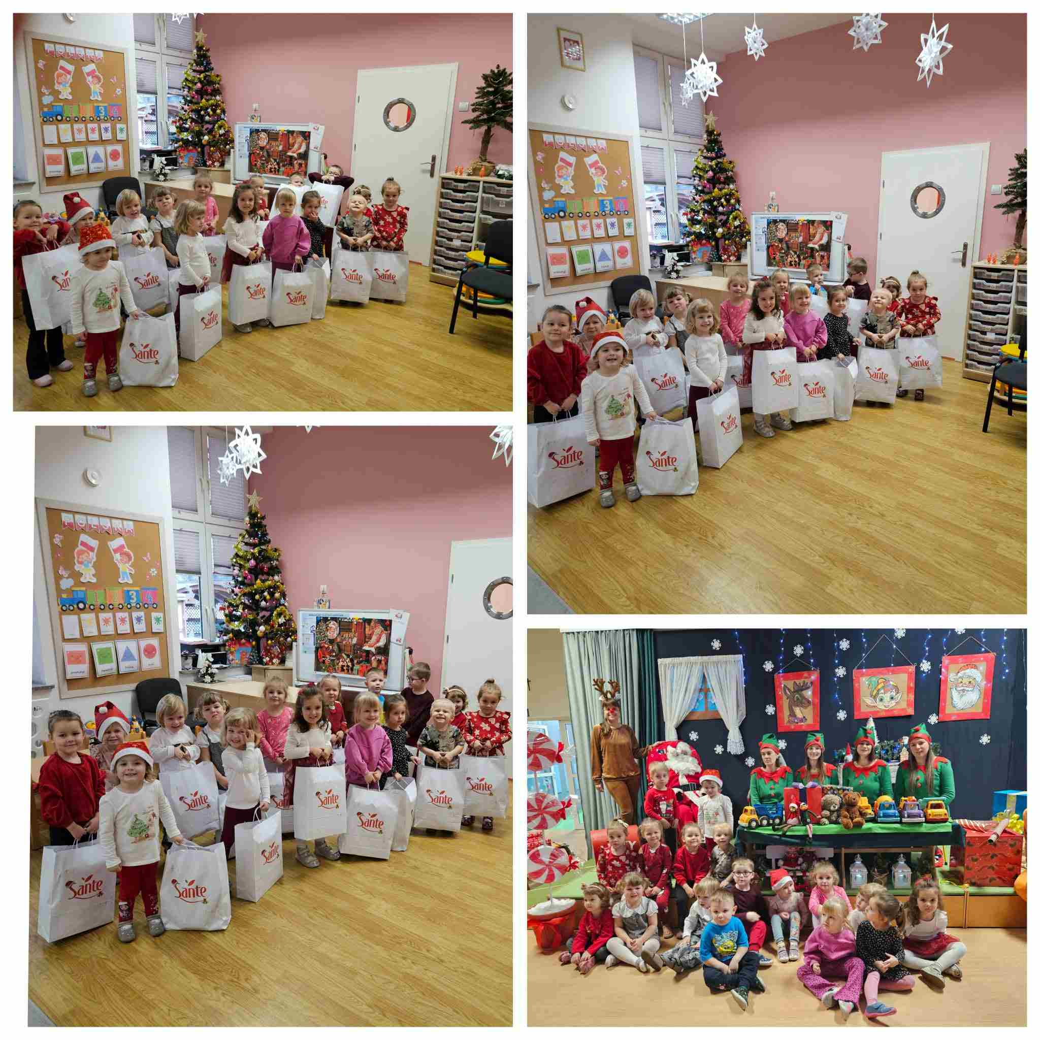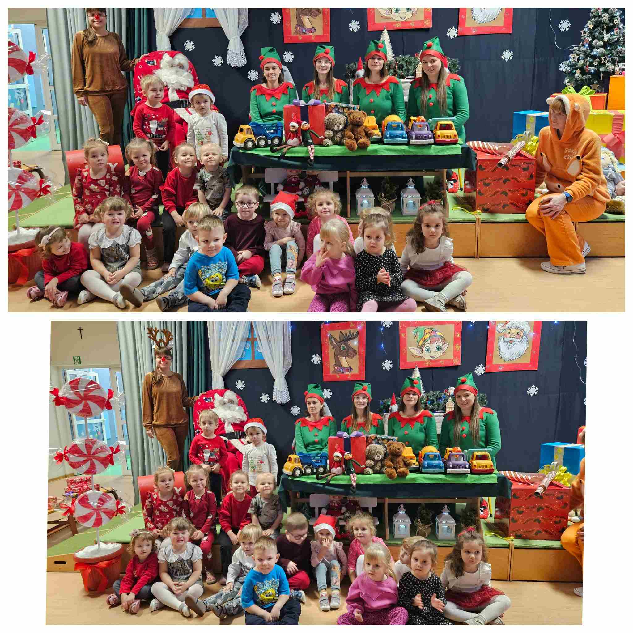 Świąteczny czas w naszym przedszkolu to wyjątkowe chwile pełne radości, uśmiechu i wzajemnej życzliwości. Wspólnie tworzymy bożonarodzeniową atmosferę, pielęgnując tradycje, dzieląc się dobrym słowem i ciesząc się wspólnie spędzonym czasem. Te momenty pozostają w pamięci dzieci jako piękne i pełne ciepła wspomnienia.