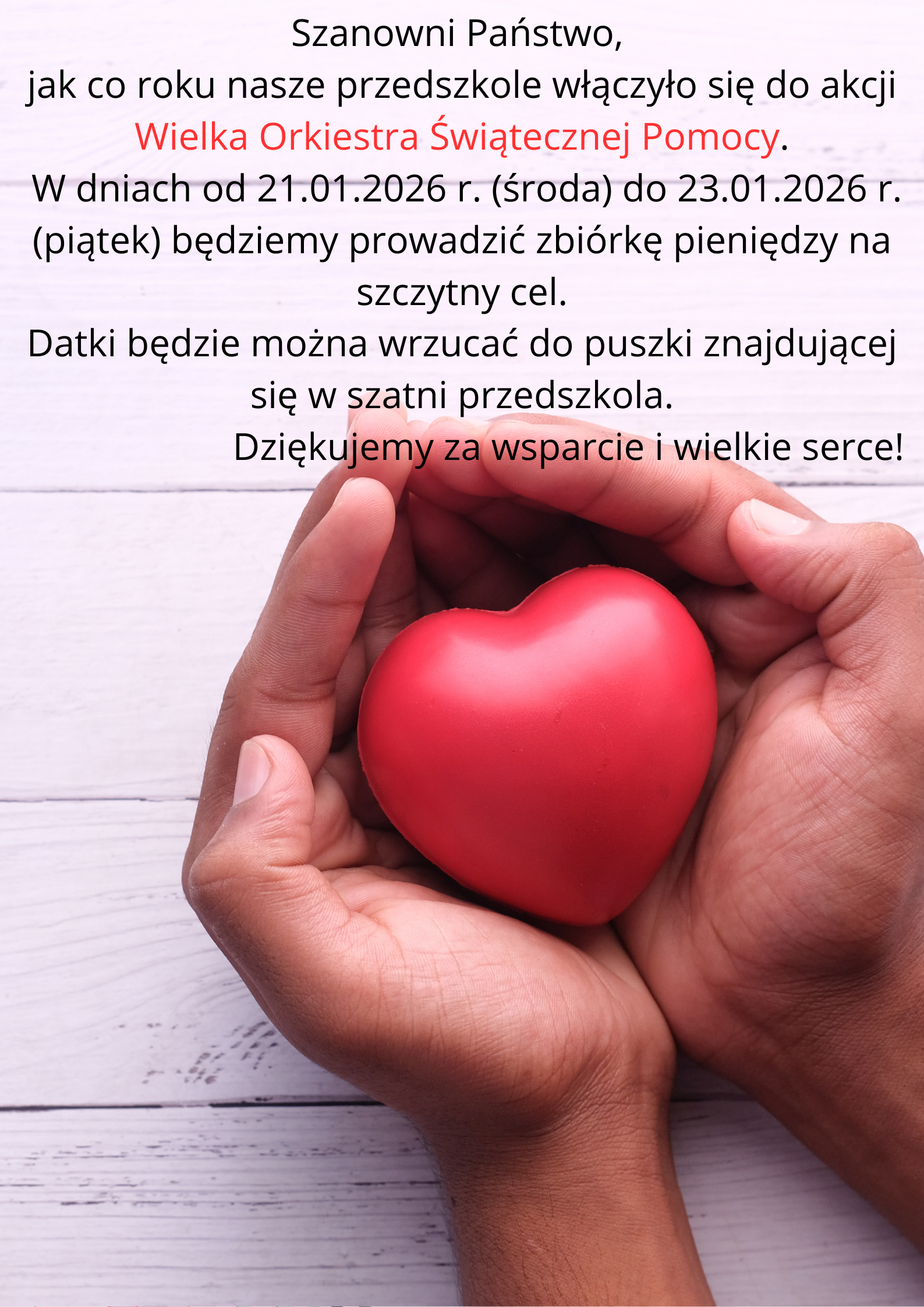 Zachęcamy do udziału w akcji Wielka Orkiestra Świątecznej Pomocy.