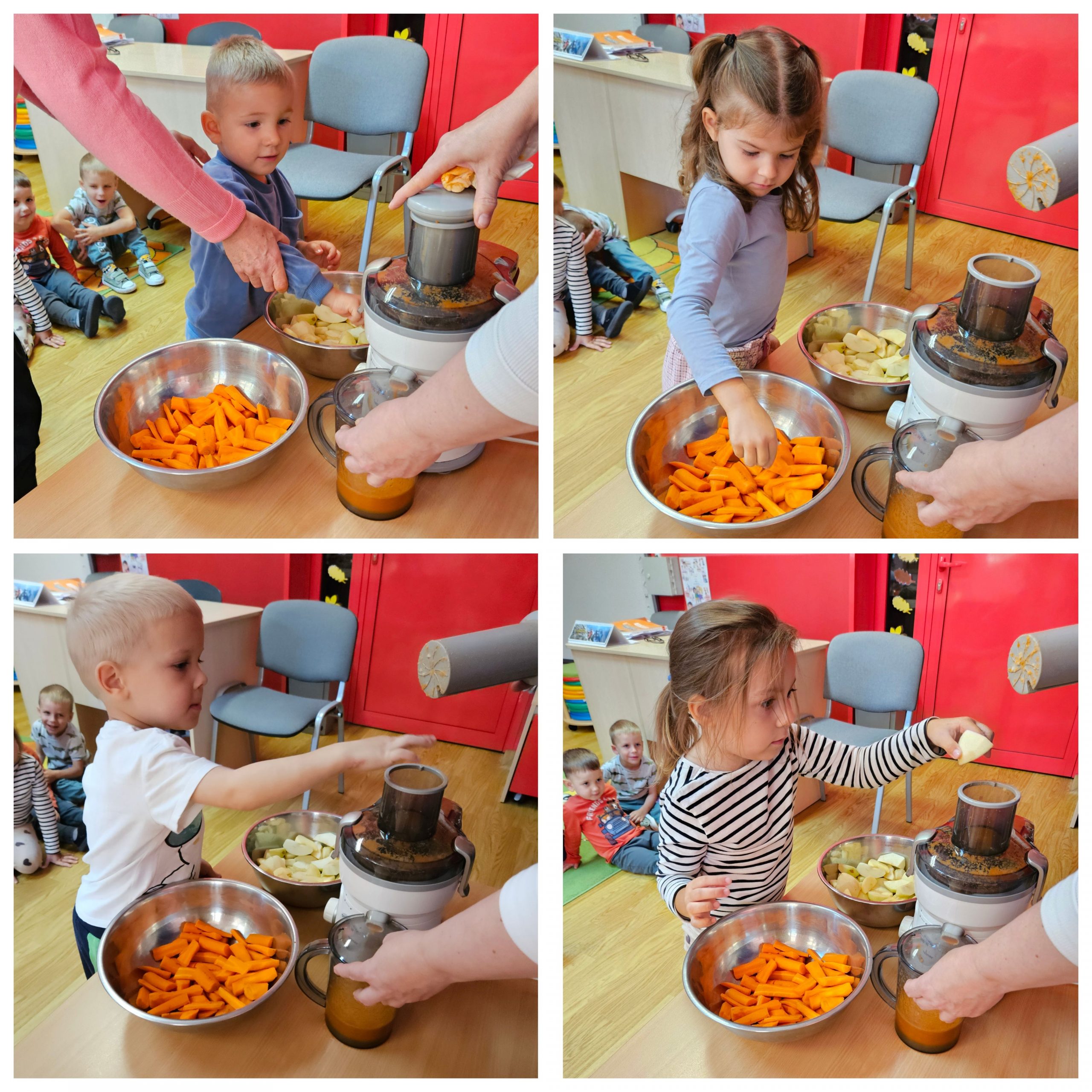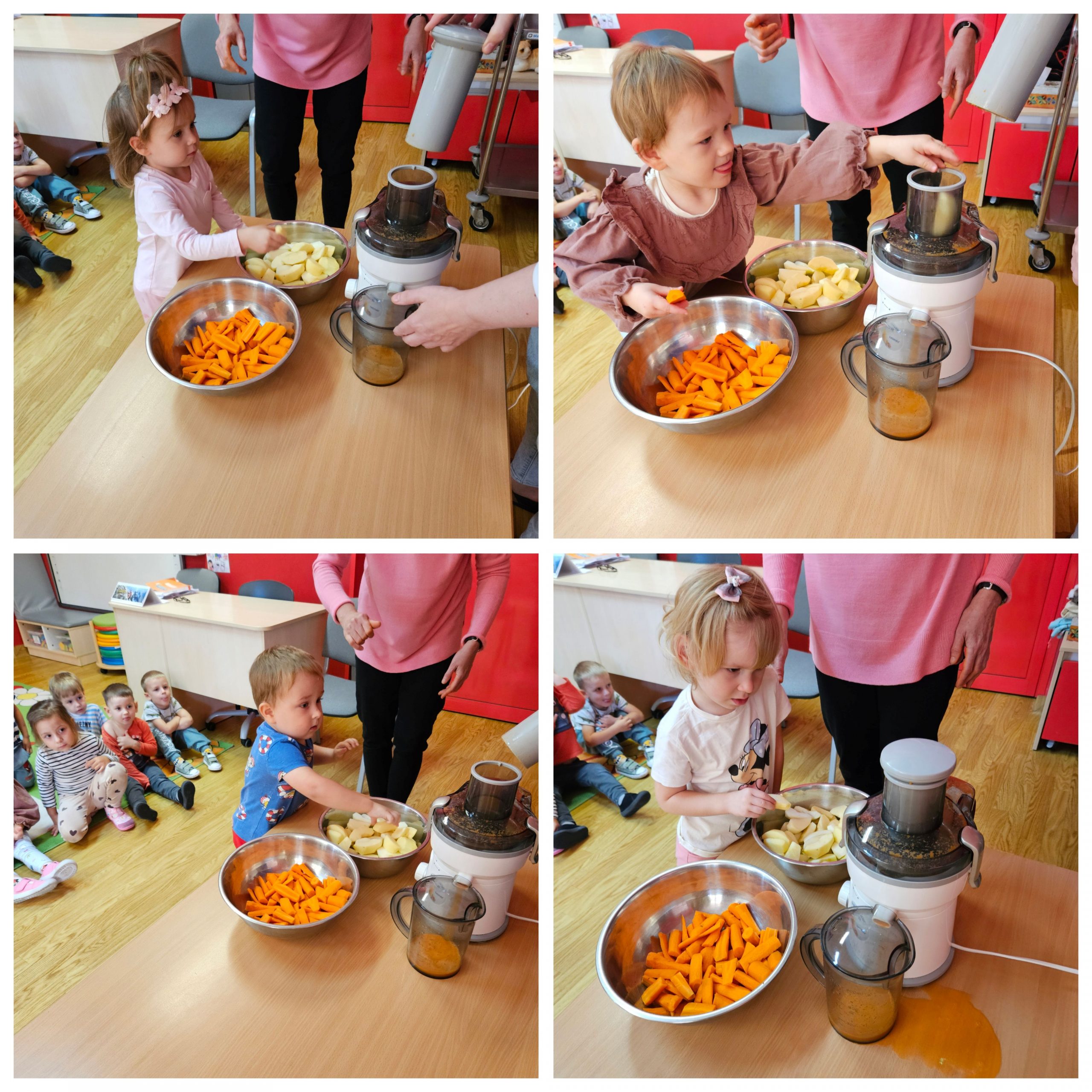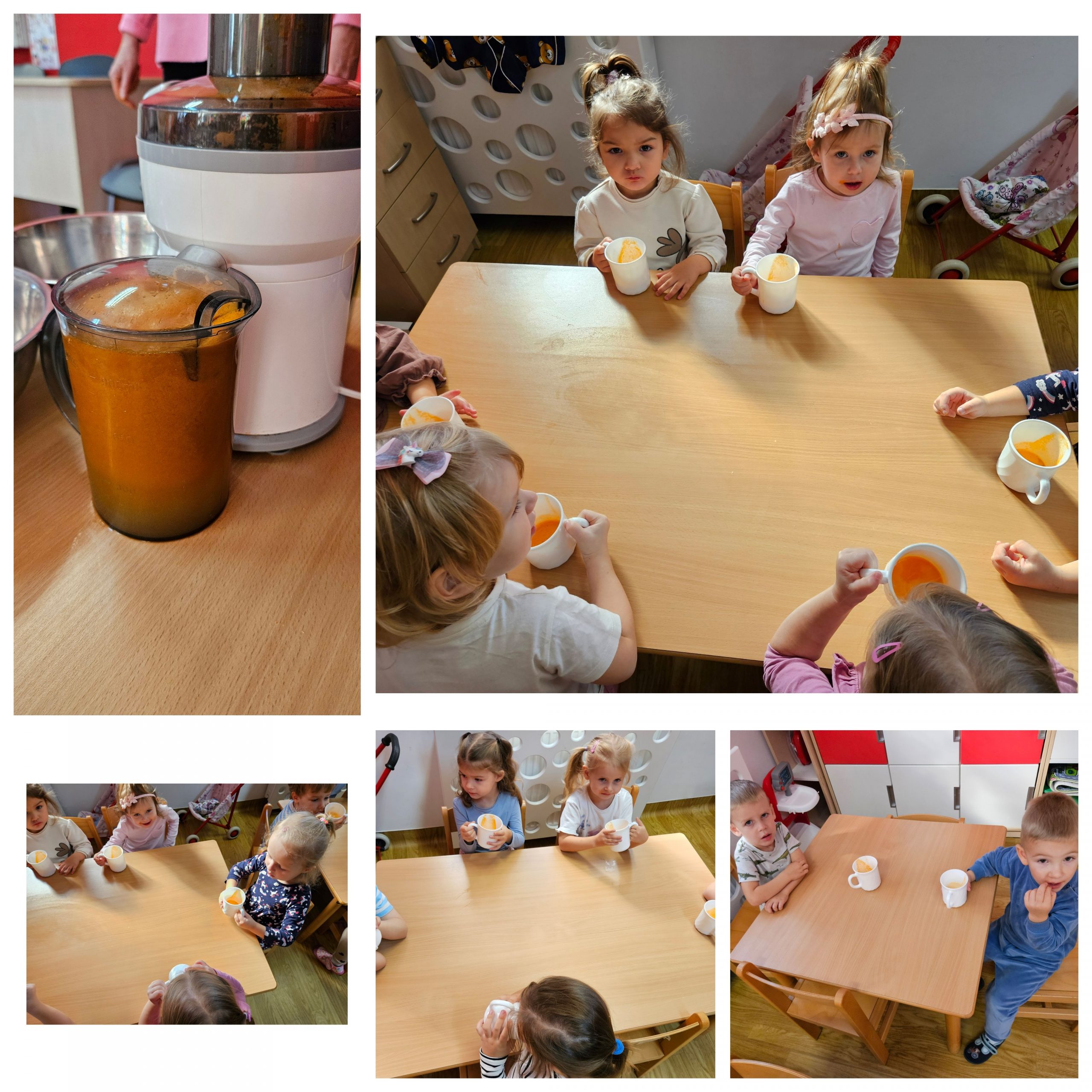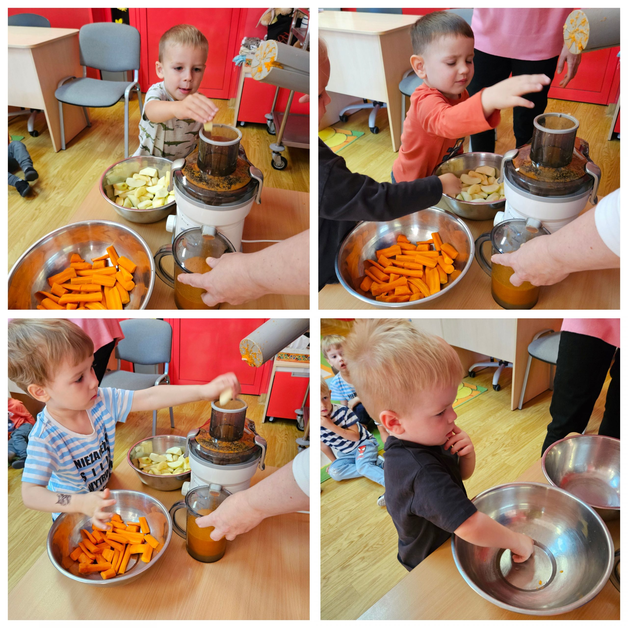 Dzieci z grupy biedronki pierwszy raz korzystały ze sprzętów dostępnych na sali gimnastycznej. Zabawa była pełna radości i uśmiechu. Dzieci chętnie brały udział i jednocześnie uczyły się dzielenia oraz czekania na swoją kolej.